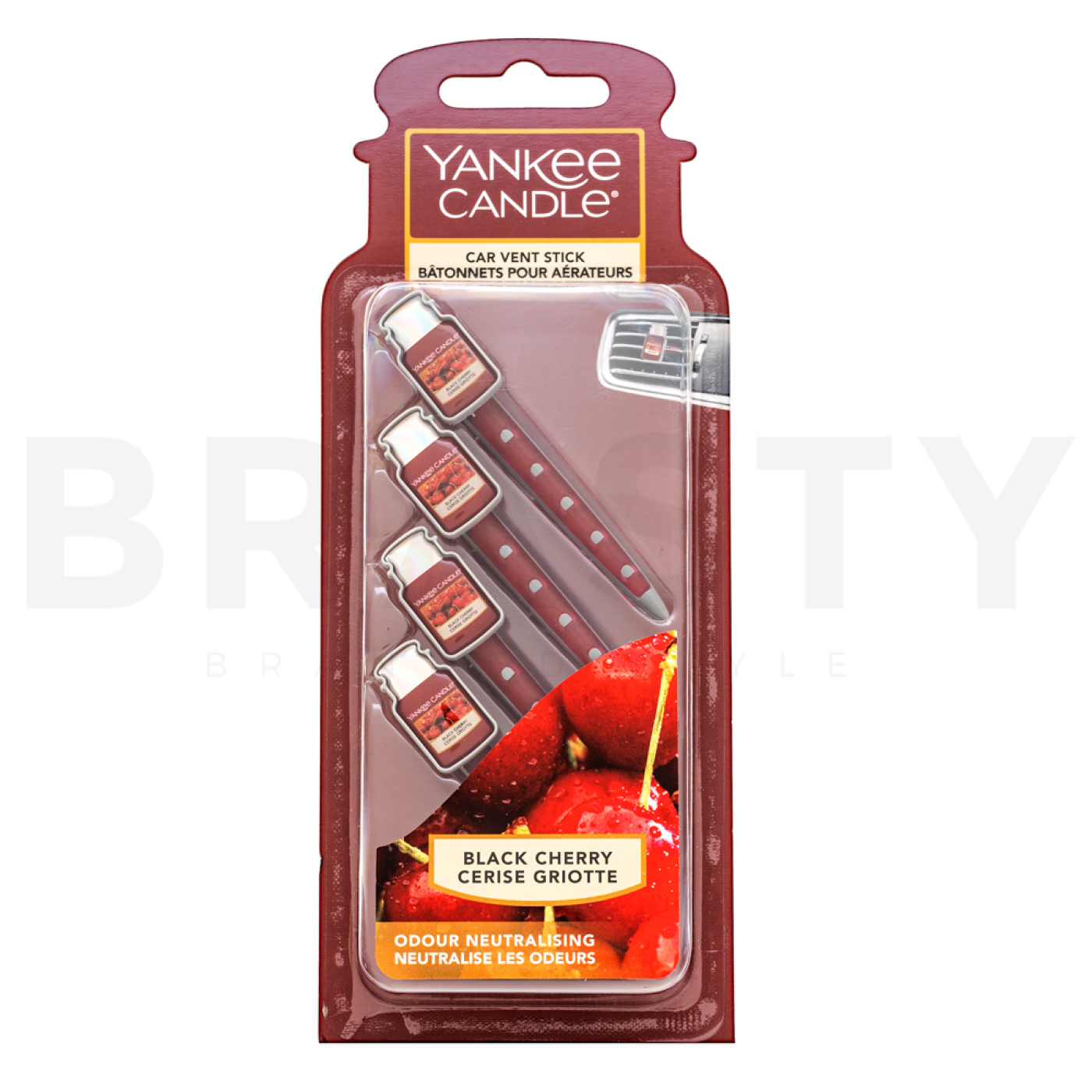 Yankee Candle Car Vent Stick Black Cherry ist der perfekte Begleiter für alle, die ihr Auto in eine Oase der Ruhe und des Wohlbefindens verwandeln möchten. Dieser fruchtige Duft gehört zum renommierten Portfolio der Marke Yankee Candle, bekannt für ihre Qualität und langanhaltenden Düfte. Mit diesem Duft wird jede Fahrt zu einem unvergesslichen Erlebnis, voller süßer Noten von schwarzen Kirschen, die Sie sofort in sonnige und freudige Sommertage versetzen.